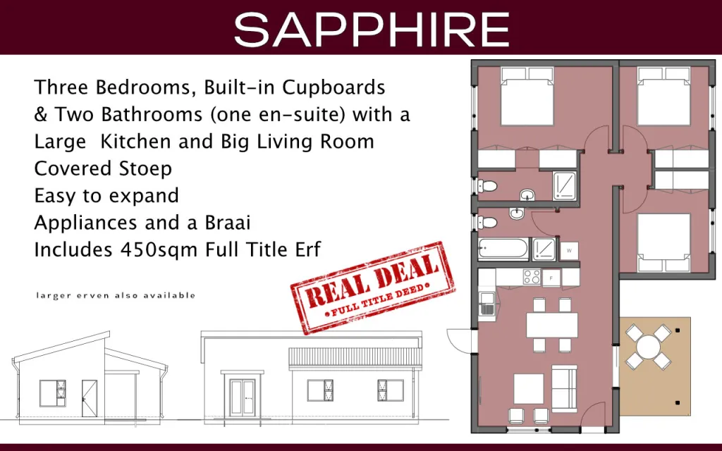 Modern 3-Bedroom Family Home – No Deposit & Transfer Costs Included! Discover the perfect blend of style, space, and comfort in this beautifully designed 3-bedroom, 2-bathroom home. Built with durable brick construction and raft foundations, this free-standing property offers long-lasting quality and peace of mind. Step inside to find wall-to-wall porcelain tiles that add a touch of elegance, while the full-height built-in cupboards provide ample storage. The separate kitchen is designed for functionality, leading into a spacious living room, perfect for family gatherings. A covered stoep extends your living space outdoors, creating an ideal spot for relaxation. The 450 m² ERF ensures plenty of space to enjoy. Plus, this home comes with HOSSM approval and a full-title deed, giving you complete ownership and flexibility. Best of all? No deposit required, and transfer costs are included! Secure your dream home today! ????✨